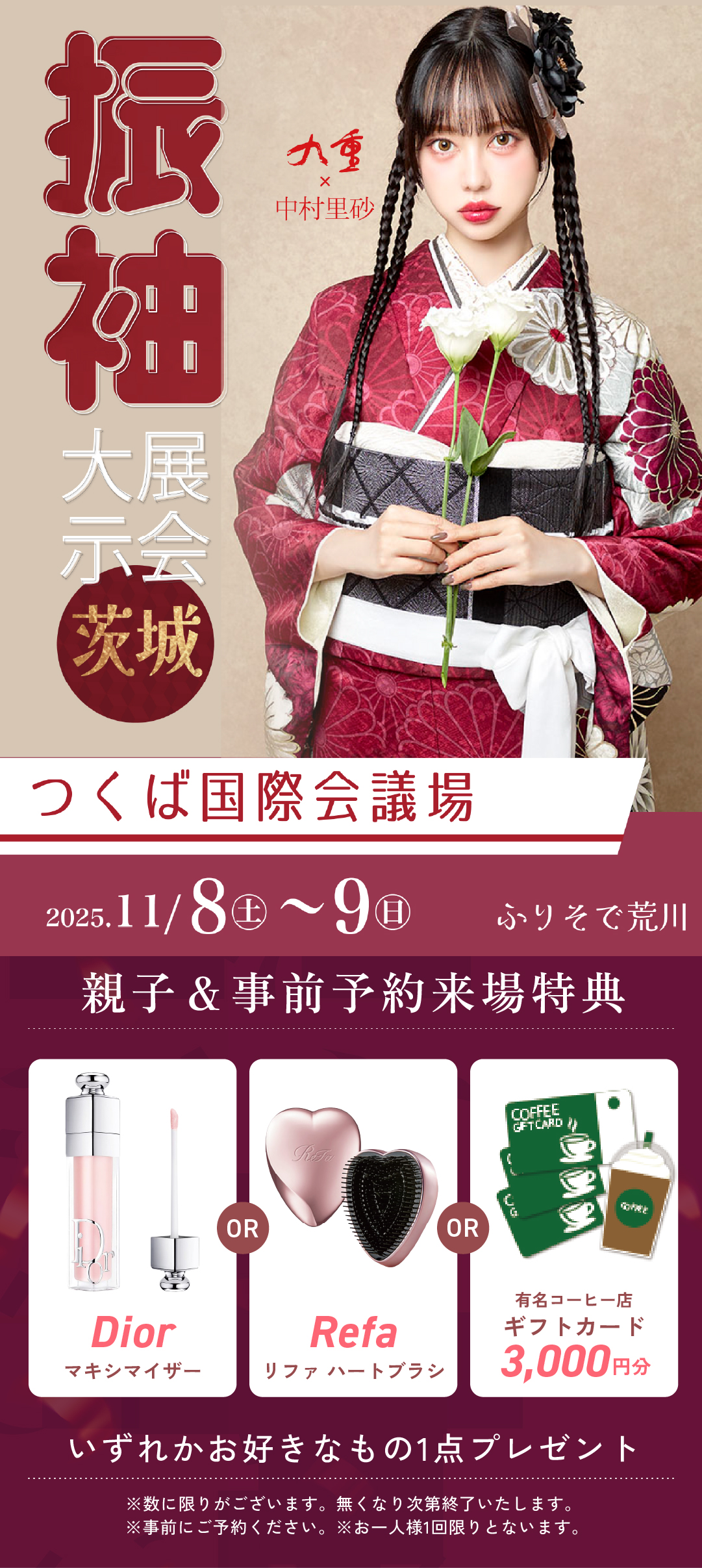 お問い合わせ先:きもの荒川 TEL:0299-45-2716 〒319-0202 茨城県笠間市下郷4097 【ご予約の展示会はこちら↓】 https://furisodemesse.com/event/arakawa-tsukuba/ 【変更/キャンセルはメールで連絡ください↓】 arakawa@furisodemesse.com