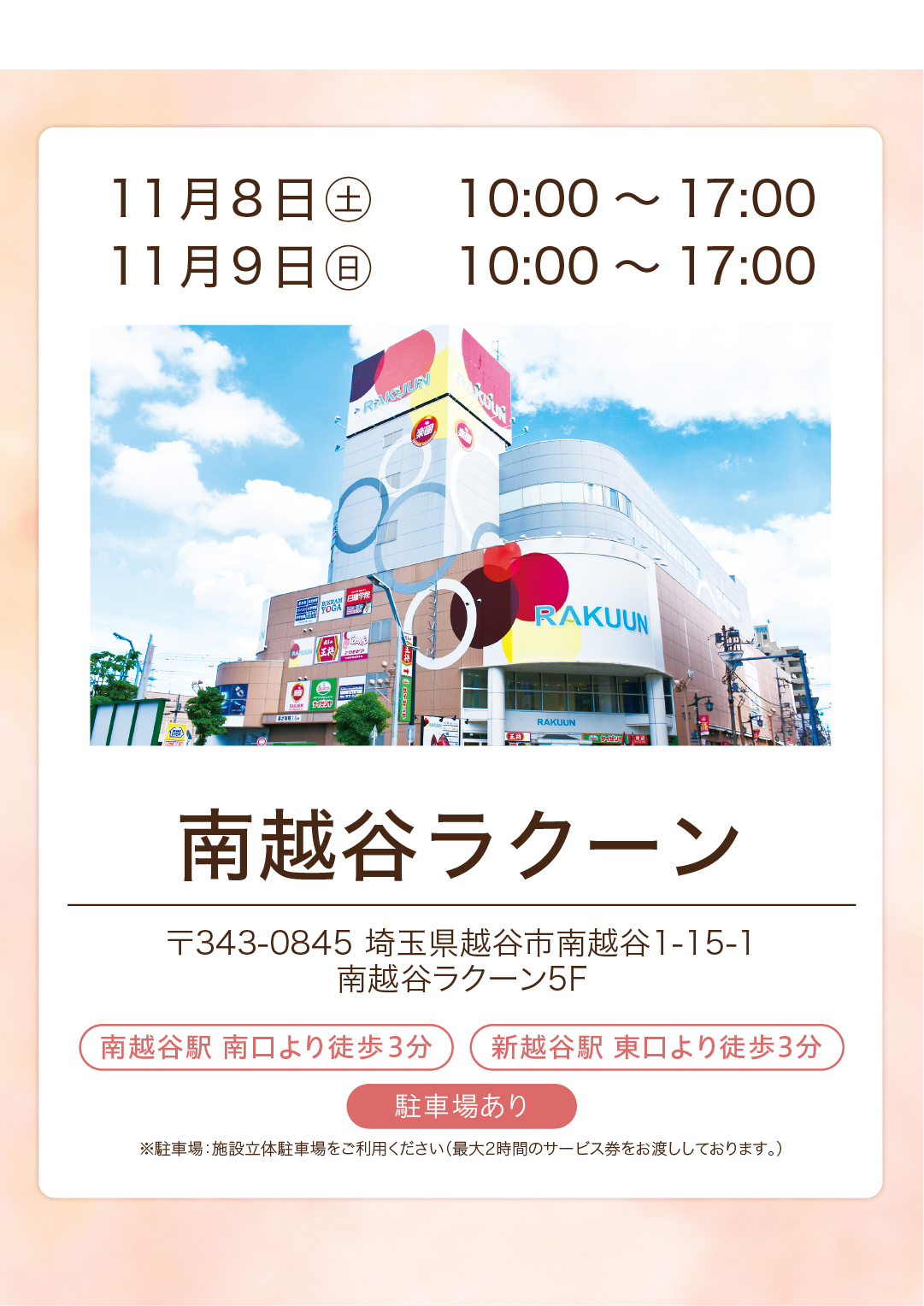 TEL0120-924369 〒343-0845 埼玉県越谷市南越谷1-15-1 南越谷ラクーン5F