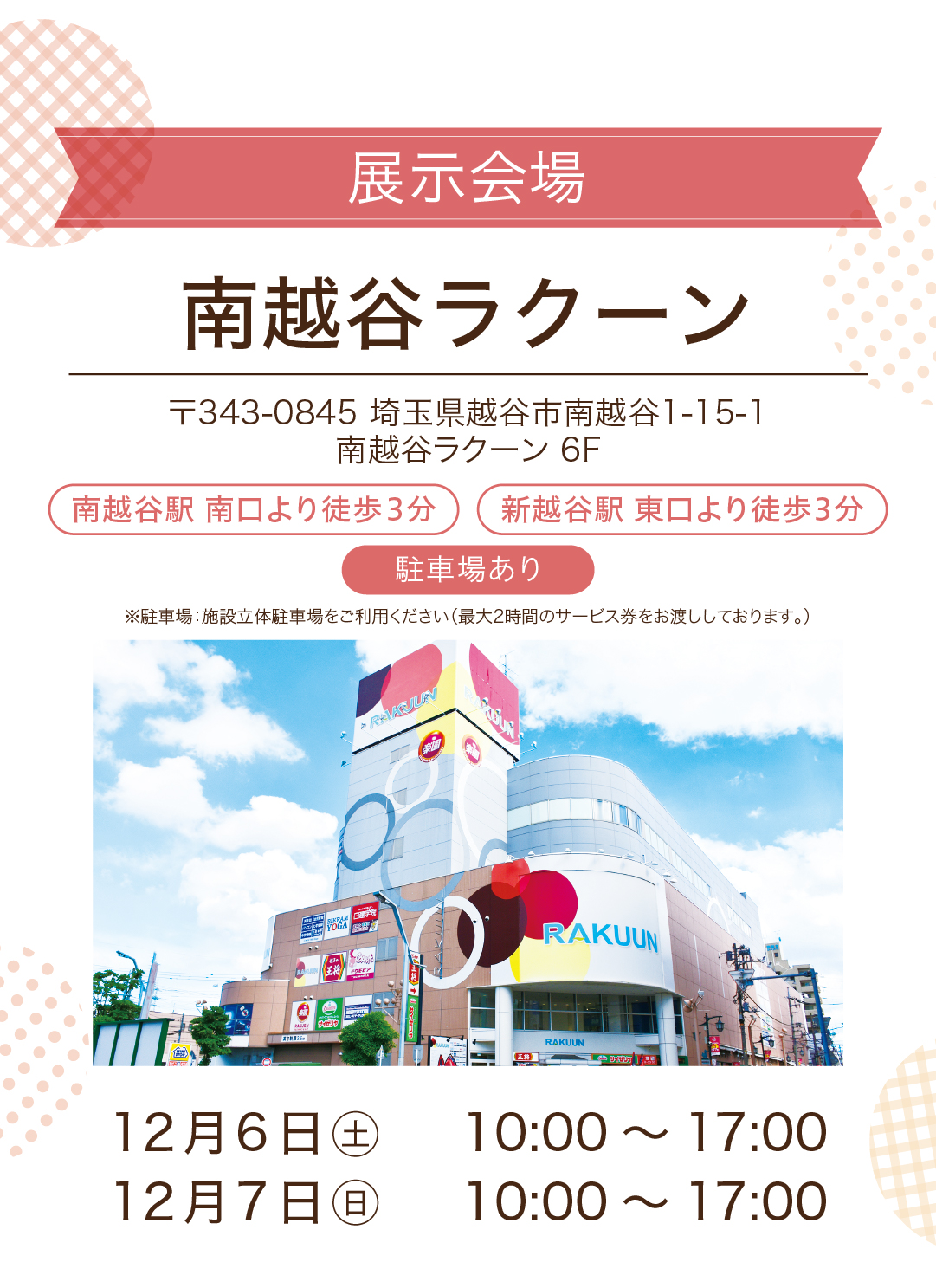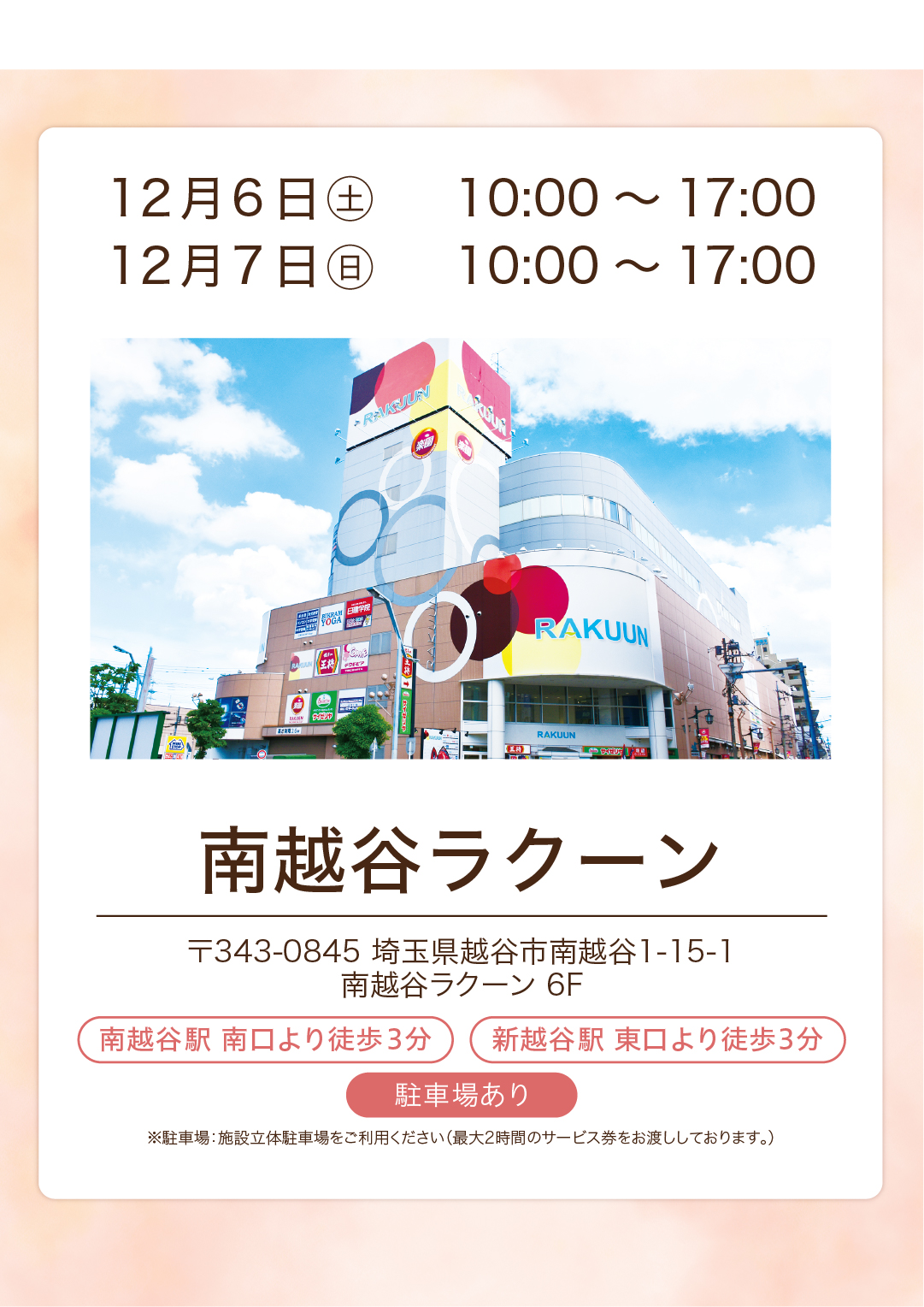 〒343-0845 埼玉県越谷市南越谷1-15-1 南越谷ラクーン5F