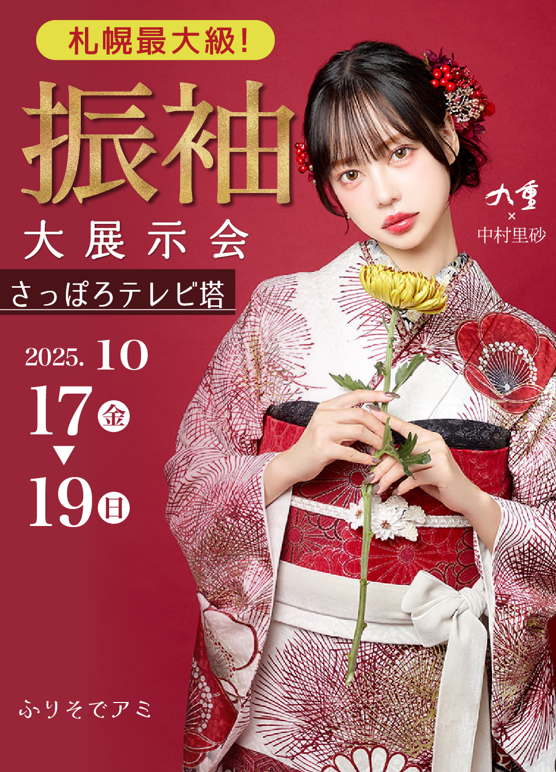 ふりそでアミ 〒981-3213宮城県仙台市泉区南中山2-2-8 電話 0120-753-881 10:00-17:00(定休日:水曜日/木曜日) 【ご予約の展示会はこちら↓】 https://furisodemesse.com/event/ami-sapporo/ 【ご予約の変更/キャンセルはメールでお願いします↓】 ami@furisodemesse.com